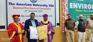 Three days Seminar on the topic, ” Environmental Science For Establishing Global Peace to make Nations Sustainable developed & Strong” followed by the Doctoral & Post Doctoral Degrees ,Awards ,Trophies from AUGP USA also were also given by His Eminence Prof Dr MADHU KRISHAN along with His Excellency Dr. A K Verma .