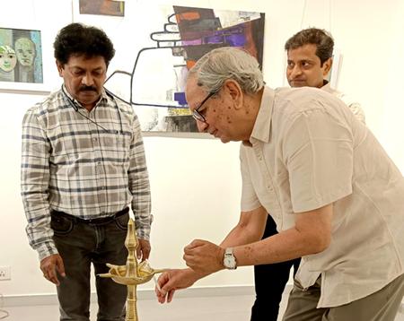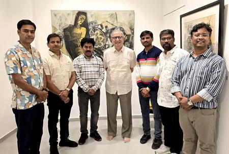 Engaging in a dialogue with the artists, Dr. Sudhir Patwardhan had conversations with the Artists and exchanged ideas about the artworks, He offered insightful guidance. His wife, Mrs. Shanta Patwardhan, was also present on the occasion.