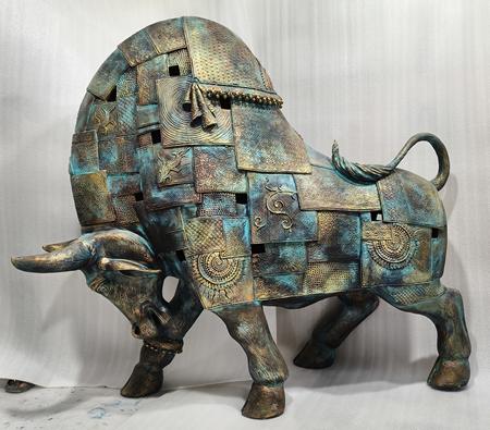 The present series incorporates his creative and innovative sculpture on bulls, horses, spiritual icons, idols etc in Bronze & FRP. The special features of his work are the superb finesse and textural finish for the creative endeavors in his unique creative style. They transcend form and materials in addition to very essence of human experience. Using both traditional techniques and contemporary sensibilities he has created these sculptures which duly explore the delicate balance between nature, culture and identity in apt perspectives. These innovative works are not only captivating, eye catching and lucid but also eloquent and creative in their own way. These in turn, share a dialogue with the viewers and onlookers leading to their warm response and due appreciations. His thoughtful and superb innovations soon leave their indelible impact on all leading to their applauds and positive response.
