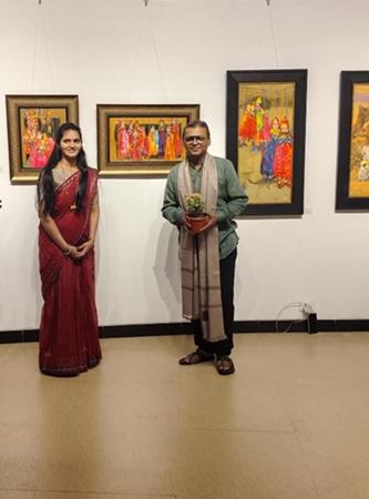 She hails from Sangli and had her art education upto G.D. Arts followed by Diploma in Art Education at Kalavishwa Mahavidyalaya Sangli. Anushka Varekar has highlighted the subtle nuances of Rajasthani culture, heritage and social life prevailing there in her expressive style of realism. The Rajasthani culture, the people there, the expressions on their faces, their colorful attire, when they come out of their shells onto the canvas, captivates the mind. Looking at Rajasthan depicted through the eyes of a Marathi artist, one begins to feel the respectful nod given by Maharashtra’s culture to Rajasthani culture.