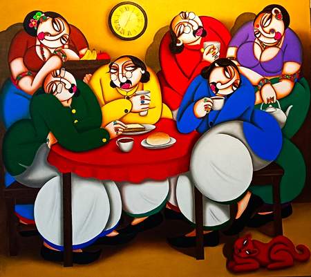 The fantasy-oriented technique of transformation of human figures from naturalism towards an expressionist sobriety based on western modernistic formal orientation. Through synthesis of all this elements, local and global I posits a benign, lyrical, witty, pleasant and colourful exposition of life, where indigenous traditional identity plays a dominant role.