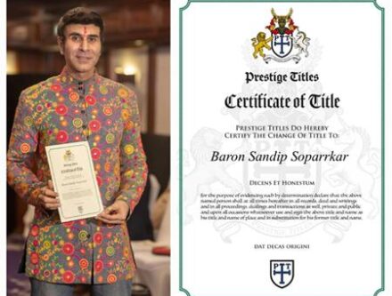 Baron Title Bestowed Upon Sandip Soparrkar In London, UK